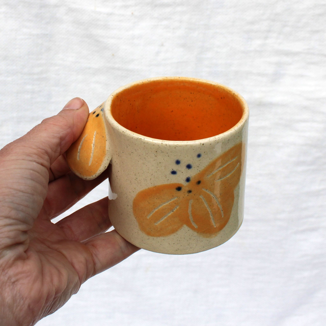 Tasse à café à fleurs jaunes Bohème, céramique artisanale