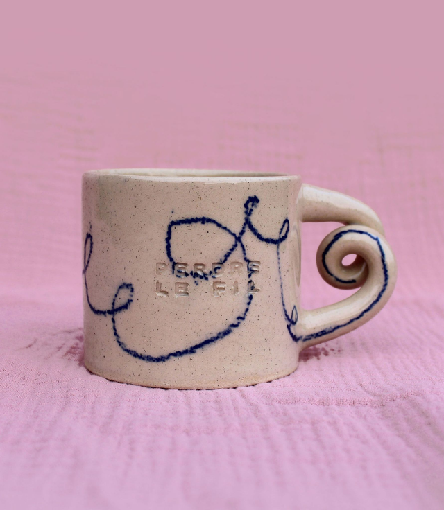 Cette tasse originale séduit par son design minimaliste et intrigant. Ses dessins au trait, formant des boucles qui s’entrelacent et s’enchevêtrent, évoquent le cheminement parfois labyrinthique de nos pensées. L’inscription « Perdre le fil » vient subtilement compléter cette esthétique, comme une invitation à accepter l’imprévu, à se laisser porter par le flot des idées ou simplement à savourer une pause hors du temps.