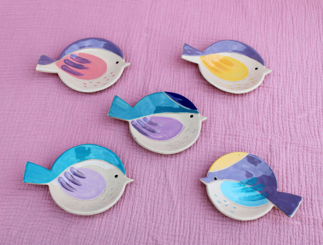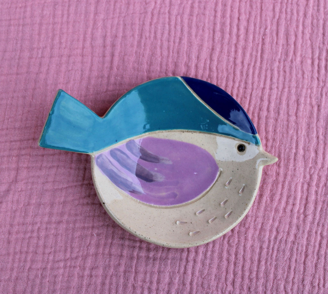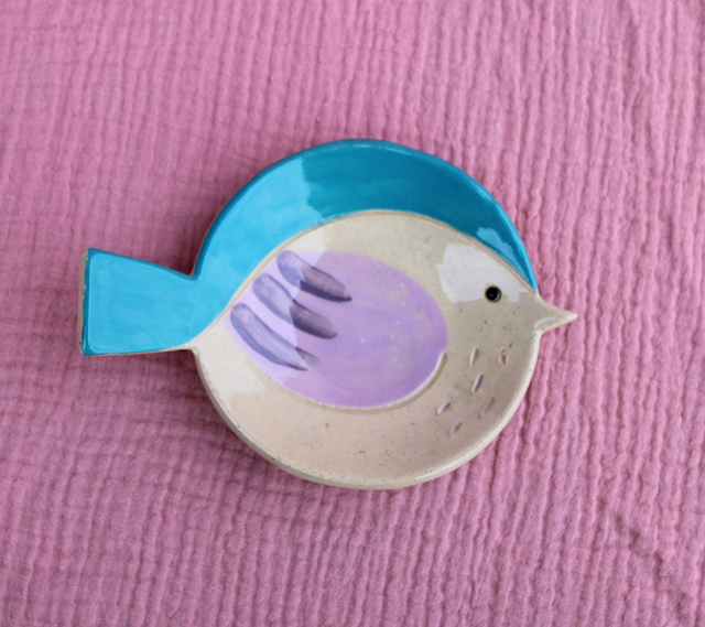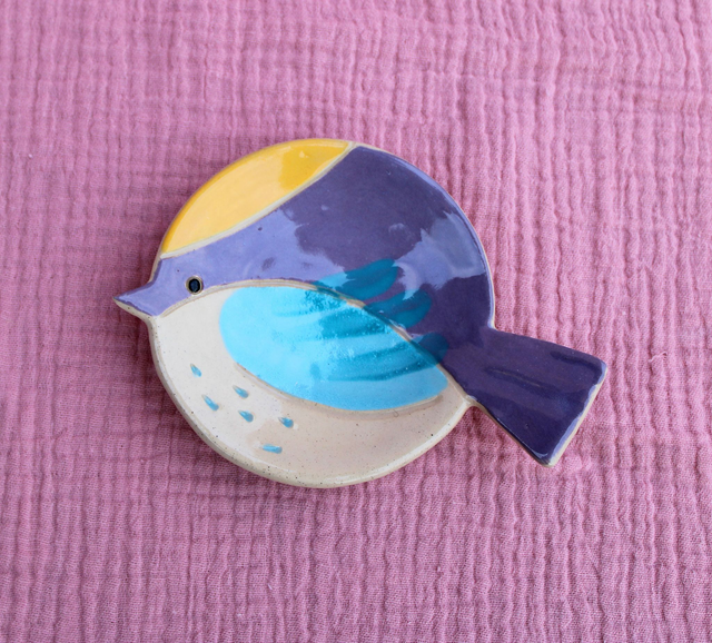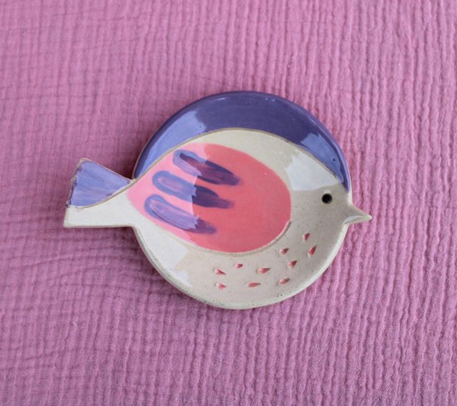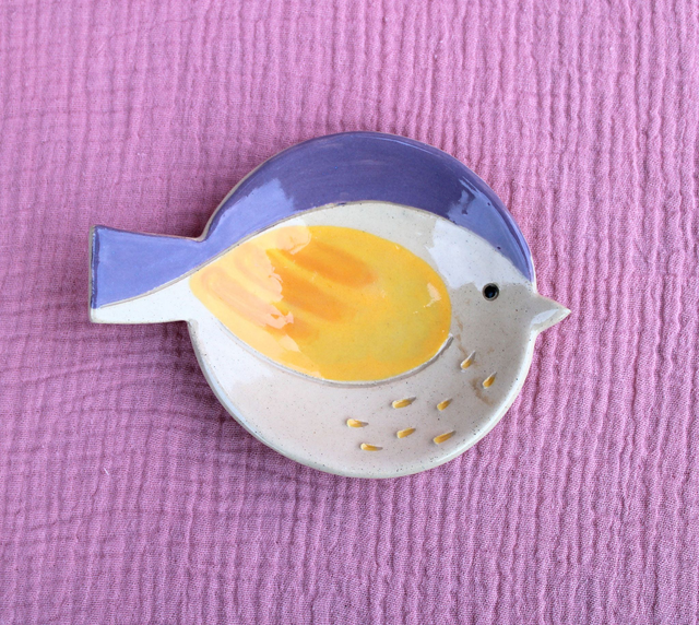 La coupelle "Piou" est en céramique décoré à l'engobe, recouverte d'une glaçure transparente.
